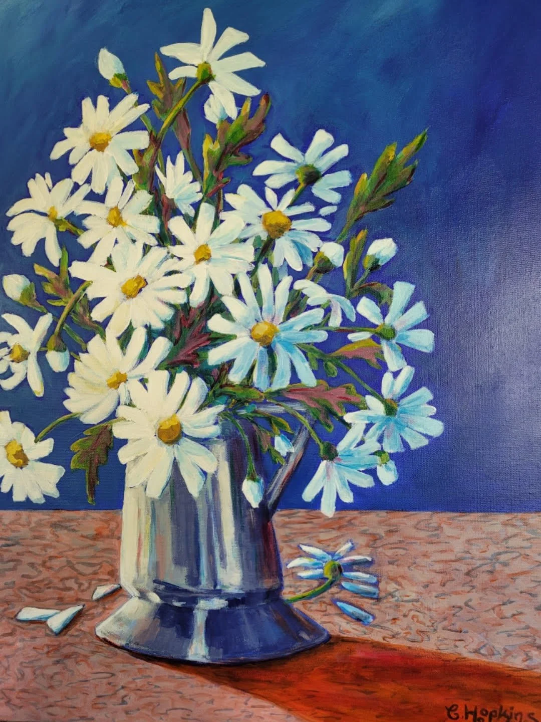 I work primarily in acrylics and occasionally mixed media, using vibrant and high key colours to explore and exaggerate the elements of light and shadows of various subjects. Some describe my work as expressionistic or fauvist, but primarily I would describe it as contemporary realism.