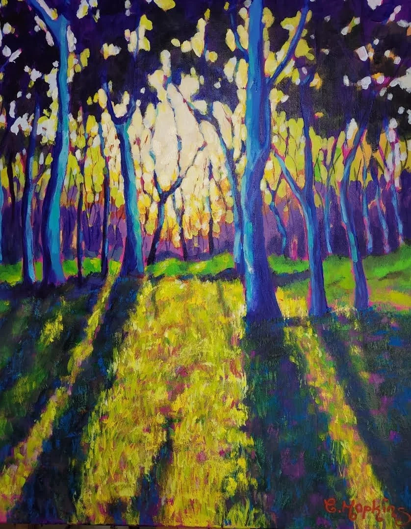 Art can pull you in many different directions, and for the last 30 months, the subject matter of light and shadows, of trees and the interplay of shapes and colour have dominated my artistic journey. Sometimes I counterbalance this with fun, colourful paintings of animals, particularly cows!