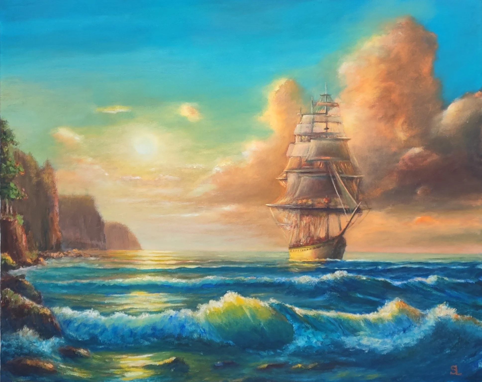 Sergei’s work blends technical precision with poetic atmosphere. His panoramic compositions often evoke imagined worlds, coastal light, and symbolic depth. Whether painting the lost city of Atlantis or the quiet resilience of a fishing boat, his art invites viewers to pause, reflect, and feel.